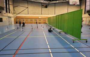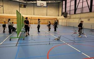 Nous avons donc accés de nouveau au gymnase, avec un sol tout neuf !! et avec les panneaux de protections, pour pouvoir faire tirer nos groupes d'archers (débutants et confirmés) sur les mêmes crénaux horaires.
